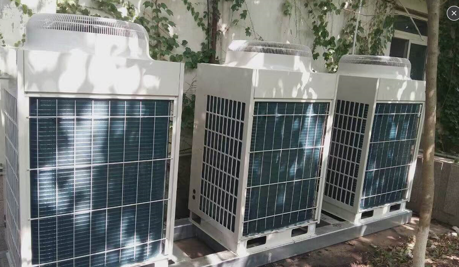 3、考虑到室外散热问题,五台室外主机特意设计安装在办公楼北侧,外机基础选用5mm厚方钢焊接成型,载重高达5吨,稳定无后患